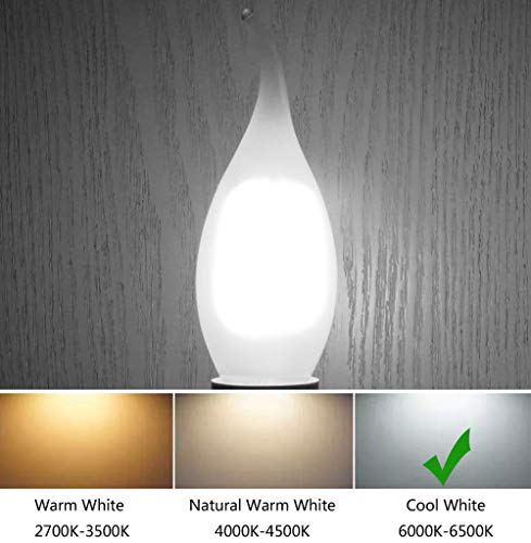 MAYCOLOR Lampadina Filamento LED Candela Fiamma E14 4W Equivalenti 40W, 400Lm, Bianca Fredda 6500K, Lampadine Candela E14 per Lampadari di Cristallo e Illuminazione Decorativa, Vetro Opaco, 10 Pezzi