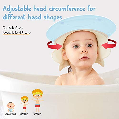 Grande e impermeabile: il bordo anteriore largo 10,24 protegge gli occhi da schizzi d'acqua e shampoo sud. La protezione per capelli per bambini con grande protezione per le orecchie da 7,9 cm, non gocciola l'acqua sulla fronte o sulle orecchie durante il lavaggio dei capelli, mantiene il viso asciutto