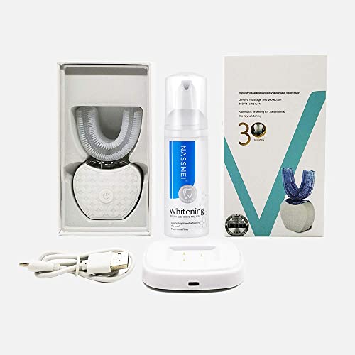 Mayeecare - Spazzolino da denti automatico ad ultrasuoni, 360 gradi, per lo sbiancamento dei denti elettrici a 360°, per adulti, con timer e ricarica wireless, colore: bianco
