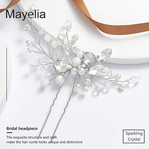 Mayelia Fermaglio per capelli da sposa in cristallo con perle argentate e strass per donne e ragazze