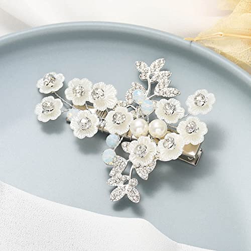 Mayelia Fiore accessori per capelli da sposa argento strass clip per capelli da sposa in cristallo artiglio per donne e ragazze