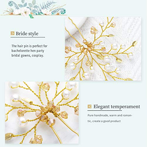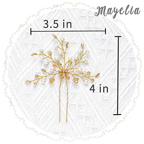Mayelia - Forcine per capelli da sposa, a forma di foglie con perle, color oro, accessori per matrimoni, per donne e ragazze (confezione da 2 pezzi)