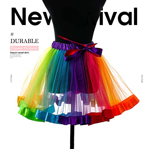 Mayelia Gonna a tutù a strati arcobaleno danza gonne in tulle elastico classico gonne da ballo per donne e ragazze, multicolore, 40W regular
