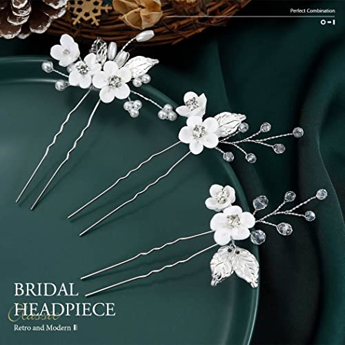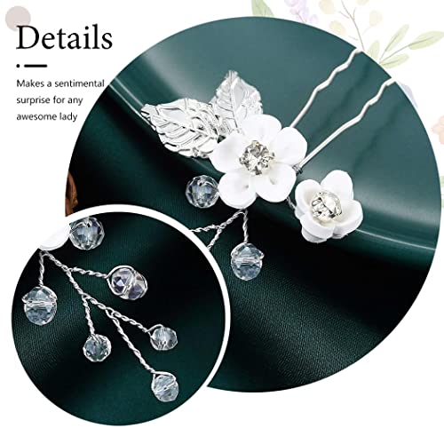 Mayelia - Mollette per capelli da sposa con fiore in argento, con strass e strass, per donne e ragazze, confezione da 5