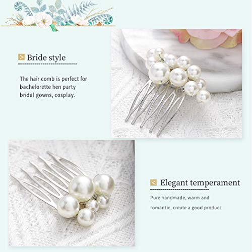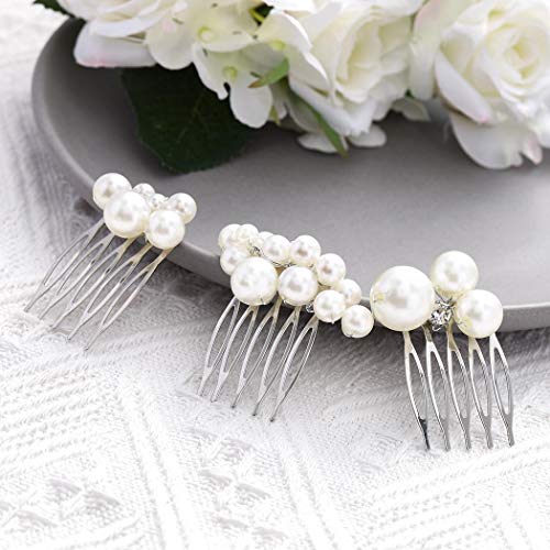 Mayelia Pearl Bride - Pettine per capelli da sposa in argento, accessorio per capelli da sposa per donne e ragazze (confezione da 3)