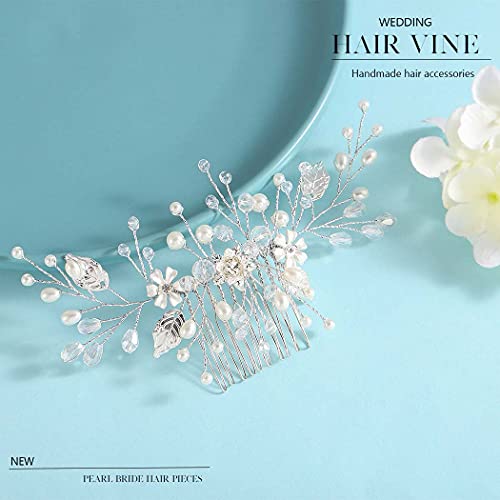 Mayelia Perla sposa sposa pettine per capelli argento strass accessori per capelli da sposa foglia clip per capelli per donne e ragazze