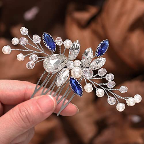 Mayelia Pettine per capelli da sposa in cristallo con perle argentate accessori per capelli con strass da sposa per donne e ragazze