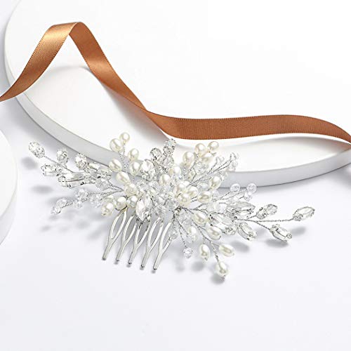 Mayelia Pettine per capelli da sposa in cristallo con perle argentate, per donne e ragazze