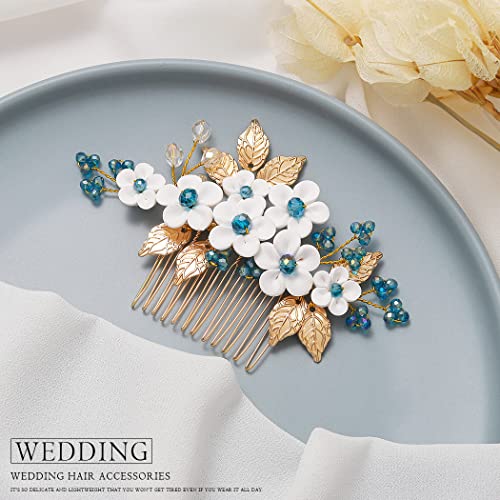 Mayelia Pettine per capelli da sposa con fiore e strass, accessorio per capelli da sposa, per donne e ragazze