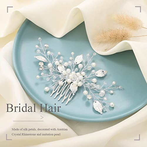Mayelia - Pettinino da nozze con perline e strass, accessori per capelli da sposa, per donne e ragazze, color argento