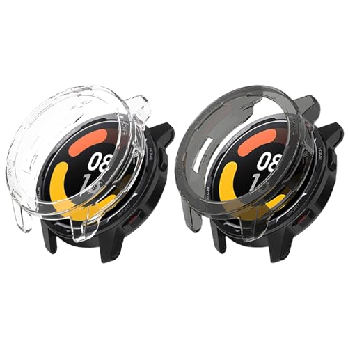 Mayfun 2 Pezzi Custodia Compatibile con Xiaomi Watch S1 Active Cover, Sottile Custodia TPU, Antiurto Morbida Protezione Case - Nero+Trasparente