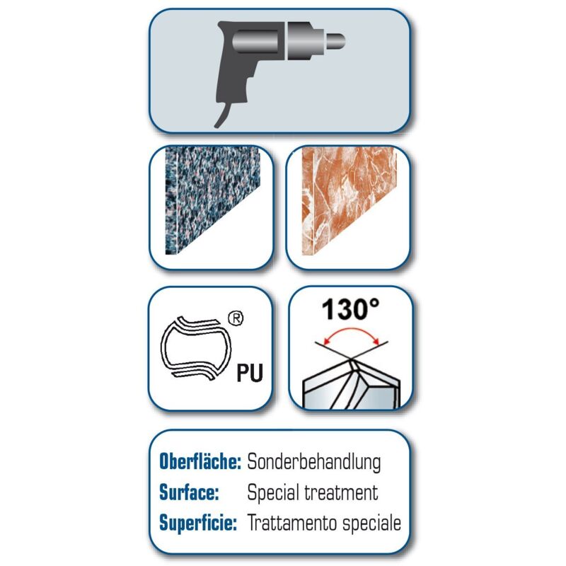 Dettagli tecnici Contenuto 1 pz. Diametro albero 8 mm Diametro di foratura 8 mm Idoneità del materiale Marmo, Granito Lunghezza totale 120 mm Materiale punte Acciaio Tipo prodotto Punta Granito Punta Granito 8 mm Trapano speciale per la rotazione e foratura a percussione di granito e marmo. Grazie allo speciale trapano la geometria e piastra in metallo duro particolarmente adatto per la foratura di tutti i tipi di granito, anche in condizioni più difficili. Testo tradotto automaticamente. Incluso nella consegna null Requisiti di sistema null