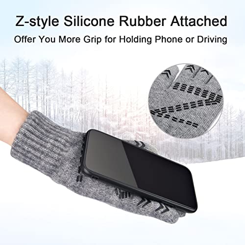 Maylisacc Guanti Touch Screen, Guanti Invernali Termici con Rivestimento in Palmo, Morbido Antiscivolo Impugnatura in Silicone, Leggero e Flessibile (Grigio)