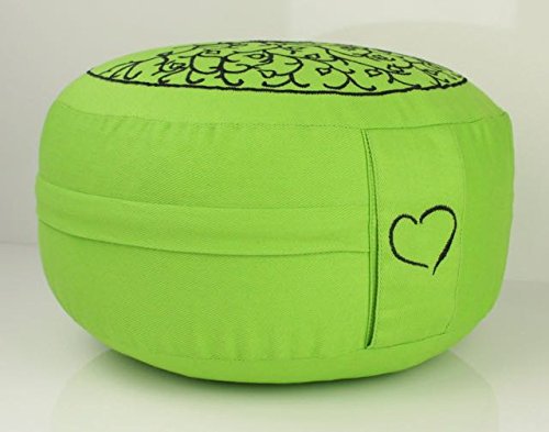 Maylow - Yoga con Il Cuore - Cuscino Yoga da Meditazione con Ricamo Albero della Vita 33 x 15 cm Imbottito in Farro - Rivestimento e Federa 100% Cotone (Verde Mela-Nero)