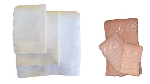 MAYRA Tris Set Asciugamani Bagno Telo Doccia, Viso, Ospite in Morbida Spugna 100% Cotone Personalizzabile con Nome Iniziali Cifre Ricamato da Personalizzare (Bianco 2)