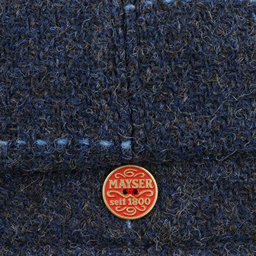 MAYSER Coppola Seven Premium Harris Tweed Uomo - Made in The EU Cappellino Lana Cappello Piatto con Visiera, paraorecchie, Fodera Autunno/Inverno - 59 cm Blu