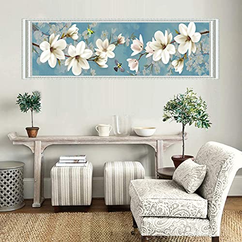 Maysurban Kit per Punto Croce Prestampato Punto Croce Kit da Ricamare Fai da Te Kit da Ricamo Completo per Principianti Home Decor Magnolia 120x39cm