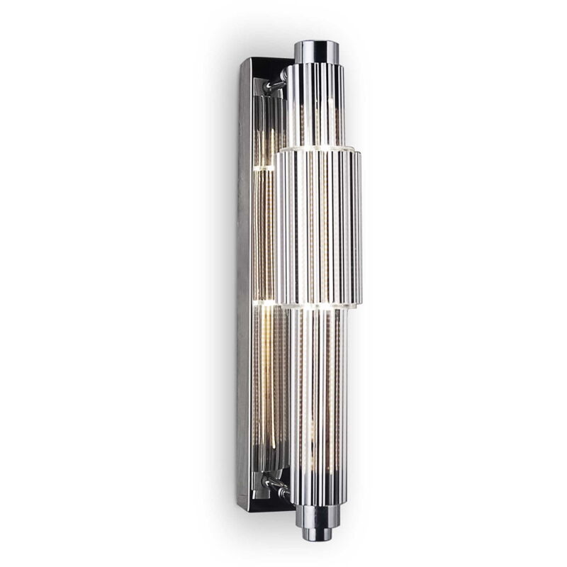 Collezione Verticale ILLUMINAZIONE SOFISTICATA CON STRUTTURA VERTICALE Applique contemporanea serie Verticale struttura in metallo colore cromo e diffusore in vetro calato colore cromo.. La sorgente luminosa è una striscia LED integrata che emette una luce calda e uniforme di 3000k. Il diffusore ha una forma cilindrica e allungata che crea un effetto di verticalità. L'applique è adatta a illuminare ambienti come cucine, soggiorni o camere da letto con uno stile moderno e minimalista.