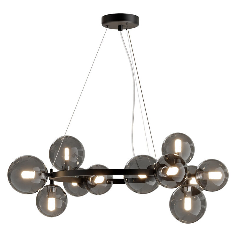Collezione Dallas ILLUMINA IL PRESENTE CON IL DESIGN CONTEMPORANEO Lampadario contemporaneo Dallas con struttura in metallo nero e 11 luci, dotato di diffusori in vetro soffiato specchiato.. Il design ispirato alla struttura molecolare conferisce a questo lampadario un aspetto moderno ed elegante. La lunghezza dei cavi delle lampade a sospensione è regolabile, permettendo di personalizzare l'altezza del lampadario in base alle proprie esigenze. La sorgente luminosa utilizzata è una lampadina con attacco G9, che assicura un'illuminazione uniforme e diffusa. Questo lampadario è perfetto per illuminare grandi ambienti, come soggiorni, sale conferenze e uffici.
