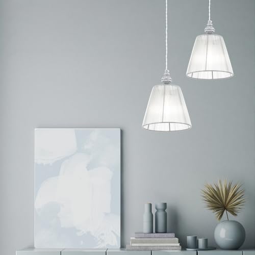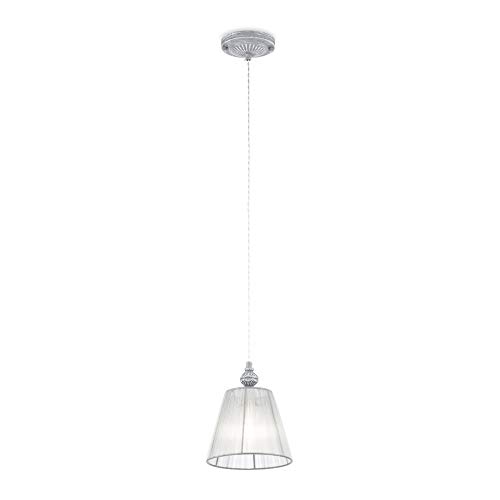 MAYTONI DECORATIVE LIGHTING Elegante Lampada Pendente da soffitto, 1 luce, in metallo colore argento/grigio, paralume in organza, Design classico, altezza regolabile per 1 lampadina E14 40W non incl