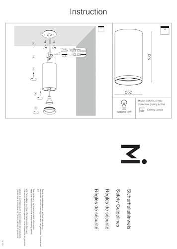 Funziona con 1 lampadina GU10 (10W) 230V (non inclusa). Compatibile con dimmers.