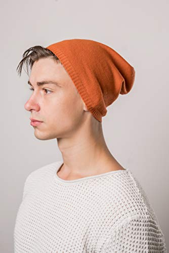 MayTree Cappello a Cuffia, Cappuccio Sottile e Leggero Realizzato al 100% in Cashmere, Berretto in Cashmere Unisex per Donna e Uomo in Nero, Grigio e Rosa Antico Arancione. Taglia Unica