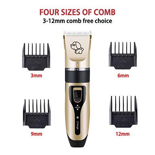 Mayyou Dog Grooming Clippers for Pets | Cat Hair Trimmer Kit - Best Cordless Dog Clippers Low Noise | Professional Hair Clipper Set with 4 Comb| Quiet Rechargeable Shaving Tool