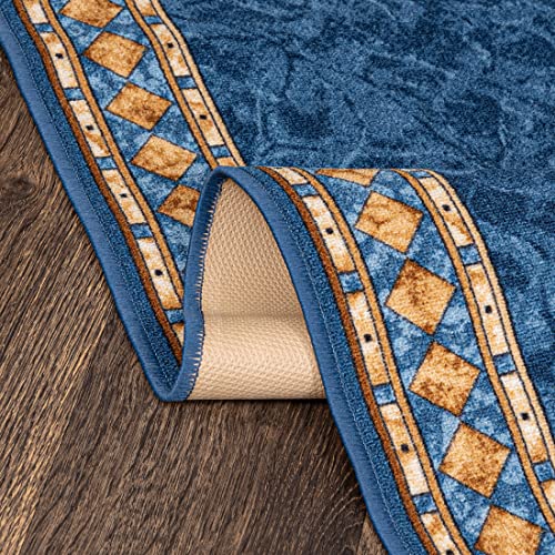 Mazovia Tappeto Antiscivolo per Corridoio - Passatoia Corridoio Motivo Classico - Tappeto a pelo Corto per Ingresso, Salotto - Certificato Oeko-Tex - Corridore a Metro - Blu 100x400 cm