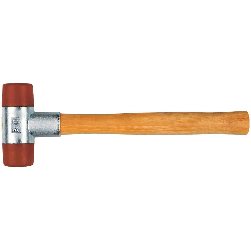 Robusto fulcro centrale in presso-getto di zinco con collarino di rinforzo salvamanico e tasselli antiurto. Con manico per martelli bordato. Con tasselli antischeggia e antiusura in poliuretano (color ruggine). Uso: Per la spianatura o l'applicazione di pezzi sui banchi macchina e per colpi morbidi nei lavori di montaggio. Ricambi: Inserto di ricambio in poliuretano: vedi n. art. 754300;