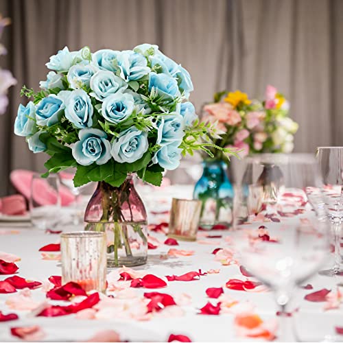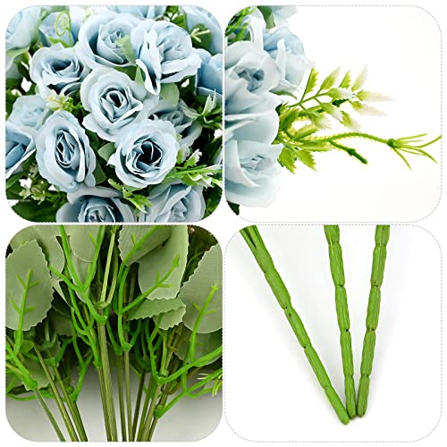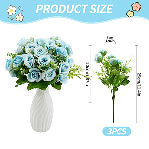 3 Mazzi di Bouquet di rose artificiali Fiori di rosa finti 30 Teste Rose di seta artificiale Bouquet floreale di rose Real Touch con foglie steli Simulazione Rose per matrimonio Vaso Decor (Blu)