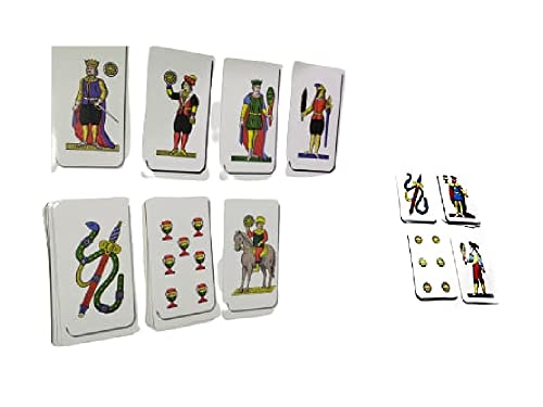 2 MAZZI, 1 Mazzo Carte NAPOLETANE GIGANTI 17X10 CM E 1 Mazzo Classico 8,5X5 CM Scopa BRISCOLA SCOPONE SCIENTIFICO + 1 amuleto