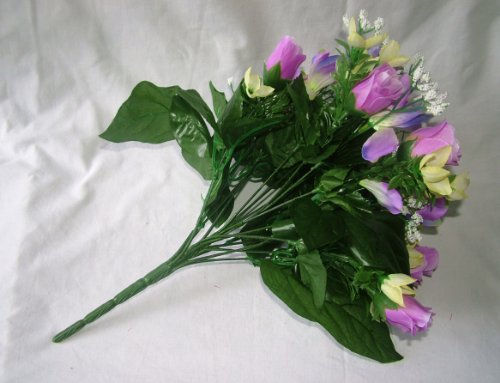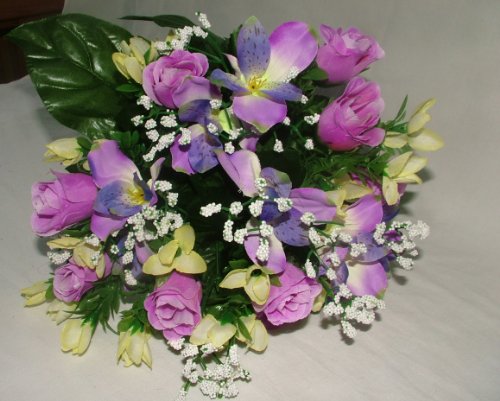 Mazzo artificiale di rosa e alstroemeria in sensuale seta, con gipsofila, 18 fiori, Lilac, Purple & Cream, 1 Bunch