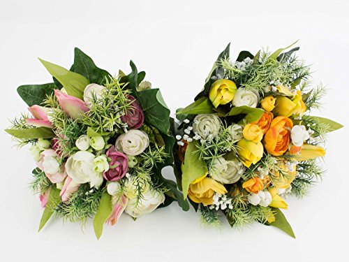 Mazzo di ranucoli e tulipani artificiale, giallo-arancione-bianco, 30 cm, Ø 25 cm - Composizione floreale artificiale / bouquet marimonio - artplants