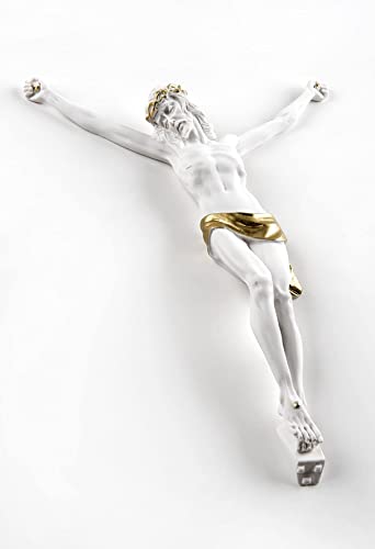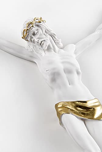 MAZZOLA LUCE Crocifisso Corpo di Cristo da Parete 23x32 cm Stile Classico marmorino Bianco Decoro Oro