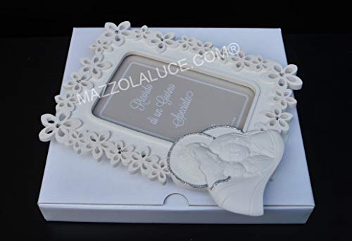 MAZZOLA LUCE Piccola Cornice portafoto da Tavolo 11x14 per Camera da Letto Sacra Famiglia Bianca Glitter Argento Made in Italy