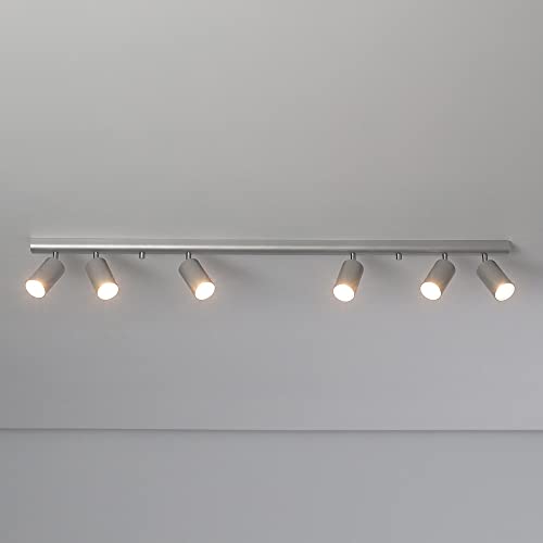 MAZZOLA LUCE Plafoniera barra con sei faretti da soffitto grigio orientabili direzionali gu10 led moderna per cabina armadio