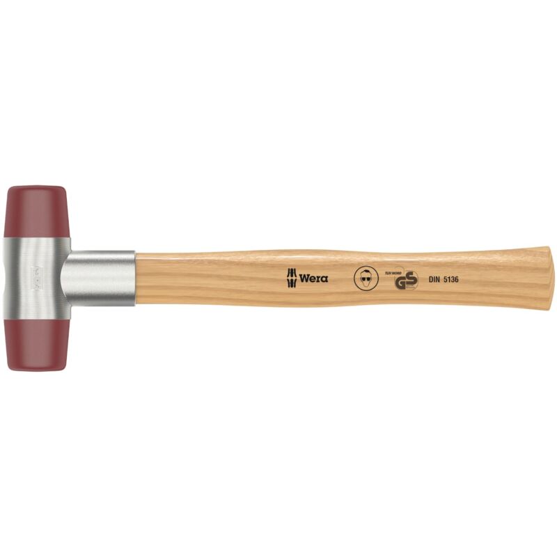 Descrizione Mazzuolo della Wera: la forma conica dei due lati collega il manico del mazzuolo indissolubilmente alla sua testa in uretano medio-duro. Manico in pregiato legno di frassino. Uso versatile grazie alle teste intercambiabili. Per carrozzieri, officine, industria meccanica.