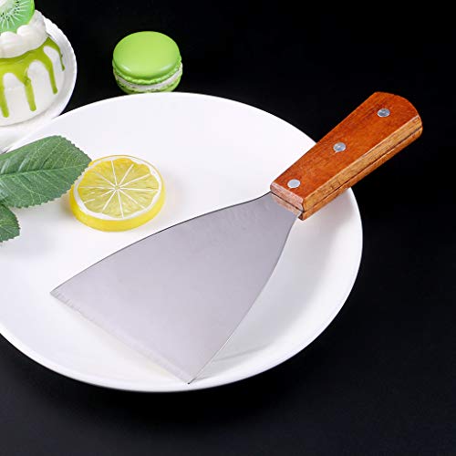 Si tratta di una pala in acciaio inossidabile combinata con manico in legno, strumento da cucina molto conveniente per tagliare la pizza, servire formaggi e torte, raschiare l'impasto. È davvero una spatola multifunzione per la cottura e la pasticceria.