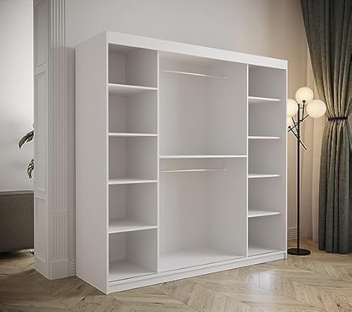 Mb-moebel Armadio per camera da letto con 2 ante scorrevoli in stile contemporaneo Armadio (bastone) con ripiani (LxAxP): 200 x 200 x 62 cm TAPILA 2 (bianco+grafite)