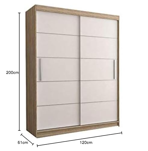 Mb-moebel Armadio con Ante scorrevoli, Armadio guardaroba con barra appendiabiti e ripiani - 150x61x200 cm - LARA06 Quercia Sonoma + Bianco