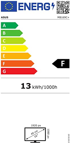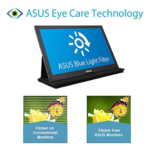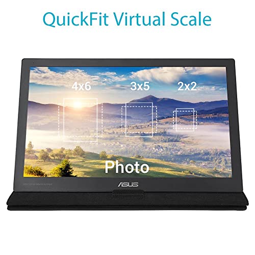 ASUS MB169C+ Monitor Portatile, 15.6", FHD (1920x1080), IPS, USB Type-C, Flicker Free, Filtro Luce Blu, QuickFit Virtual Scale, GamePlus, Custodia Smart Case, Peso 800g, Nero