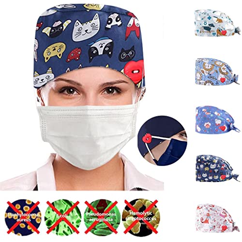 MBBYLIVES 3/5 Pezzi Berretto Chirurgico in Cotone con Fascia Regolabile Cappello Medico con Stampa Coda di Cavallo per Cuffietta Chirurgica Cuffia Infermiera Bandana Chirurgiche per Donna Uomo D05