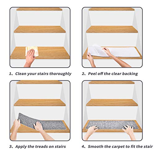 MBIGM 15 Tappetini per Scale (20 x 76 cm) Tappetino Antiscivolo di Sicurezza Runner Interno Antiscivolo per Bambini, Anziani e Animali Domestici con Adesivo Riutilizzabile, Grigio Chiaro
