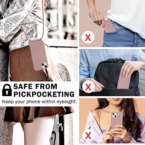 MBSLFY Cover Cordino per iPhone 13 Custodia con tracolla,Regolabile Cellulare Girocollo Case con Collana TPU Corda Silicone,Rosa chiaro