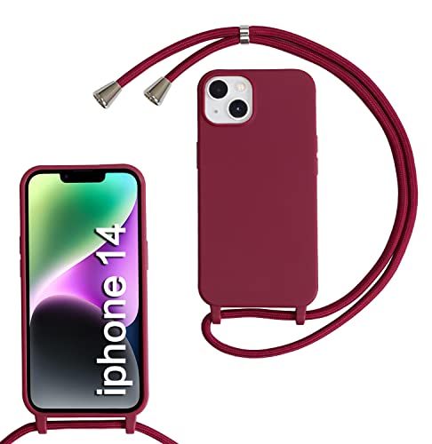 MBSLFY Cover Cordino per iPhone 14 Custodia con tracolla,Regolabile Cellulare Girocollo Case con Collana TPU Corda Silicone,Rosso