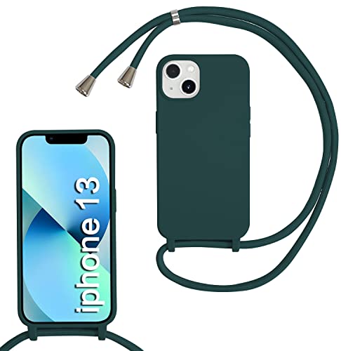 MBSLFY Cover Cordino per iPhone 13 Custodia con tracolla,Regolabile Cellulare Girocollo Case con Collana TPU Corda Silicone,Verde scuro