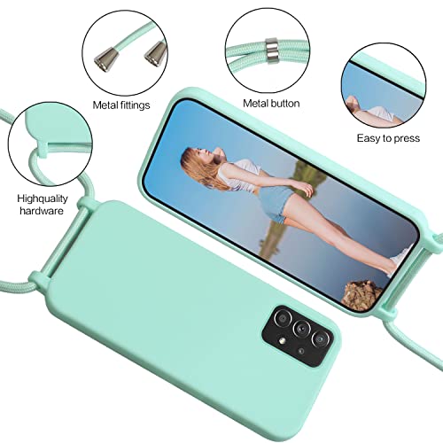 MBSLFY Cover Cordino per Samsung Galaxy A33 5G Custodia con tracolla,Regolabile Cellulare Girocollo Case con Collana TPU Corda Silicone,Menta verde