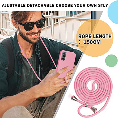 MBSLFY Cover Cordino per Samsung Galaxy S22 Plus Custodia con tracolla,Regolabile Cellulare Girocollo Case con Collana TPU Corda Silicone,Rosa