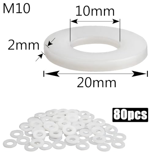 Mbsomnus 80 Pezzi Distanziali Tondi Rondelle Plastica M10-20MM Rondelle in Nylon Dischi in Plastica Poliammide con Diametro Esterno Ridotto per Macchinari Elettrodomestici Idraulici