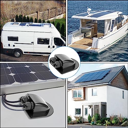 Mbsomnus 2 Pezzi Passacavo Solare Impermeabile IP68 Kit Fotovoltaico Pannello Solare Nero ABS Doppio Entrata del Cavo per Camper Barca Tetti Yacht Pannelli Fotovoltaici Accessori